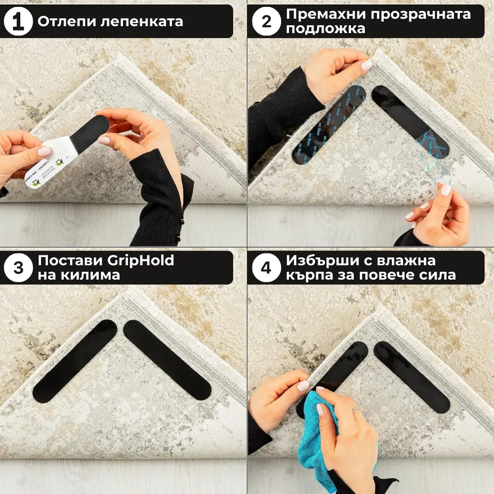 Противоплъзгащи лепенки за килим и под - GripHold