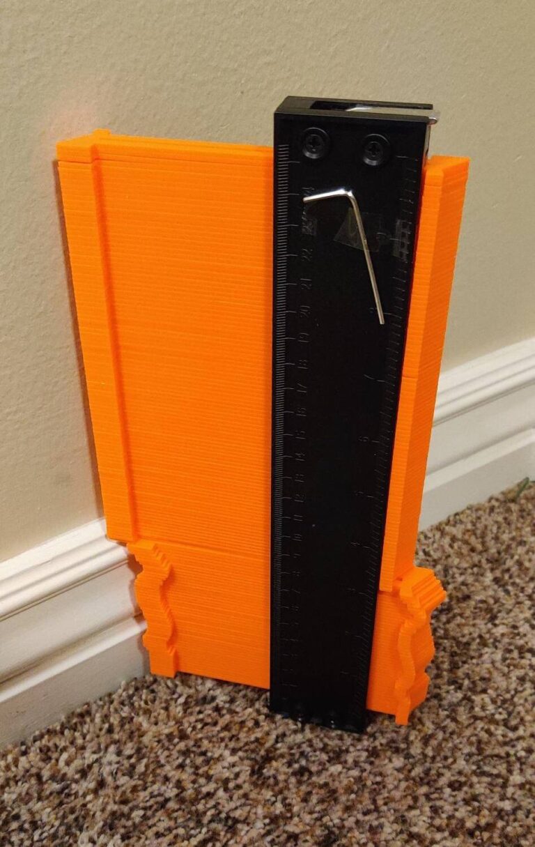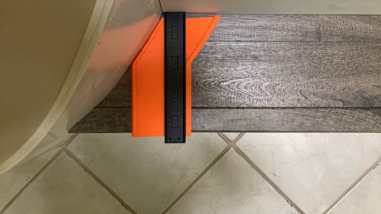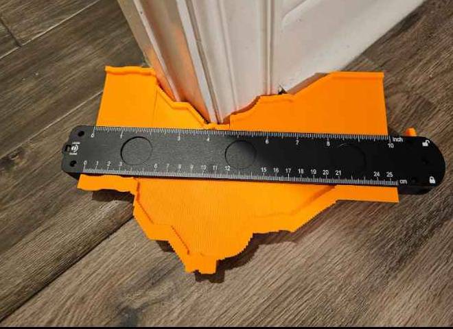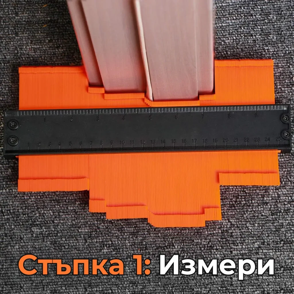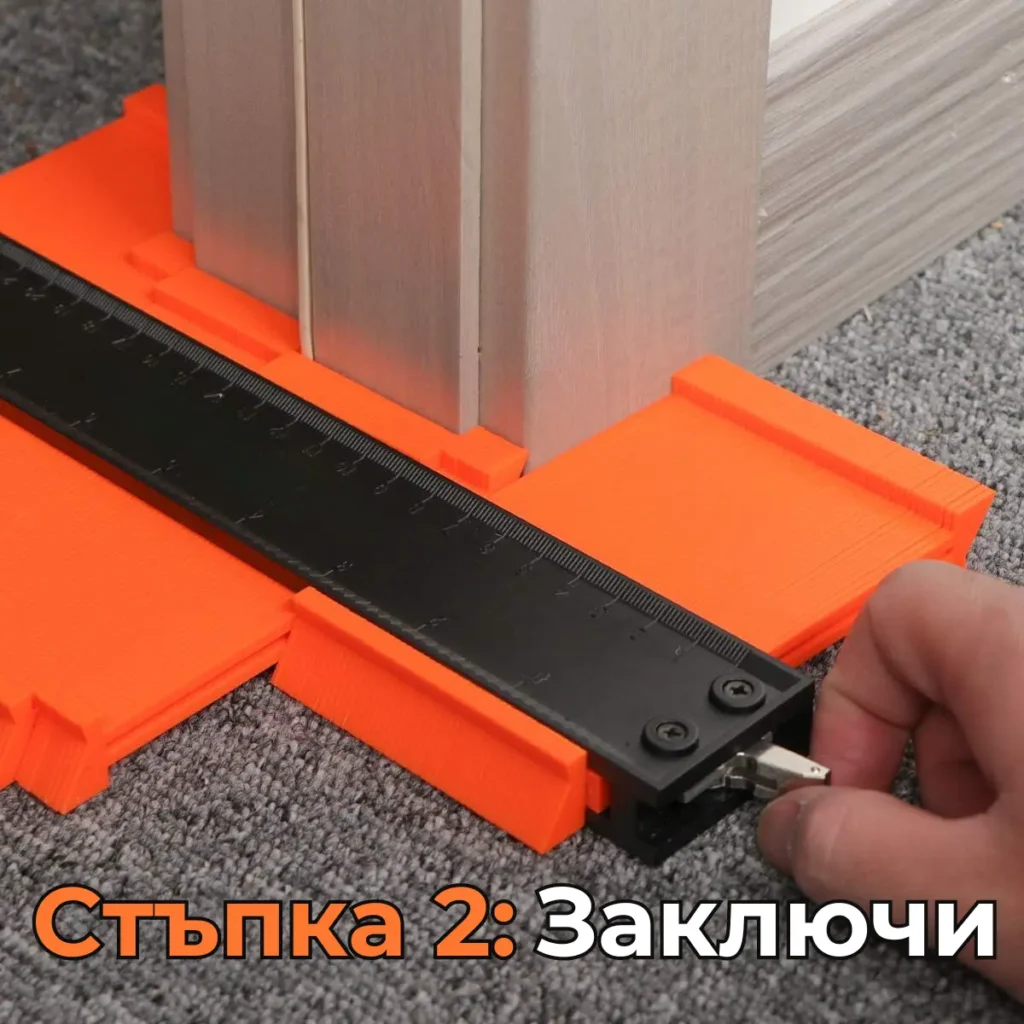 Това нещо е супер полезно! Иска ни се да го имахме по-рано! Измерителя се нагажда към рамките на вратите и други ъгли, а след това можете да я заключите и да я проследите върху това, което режете. Това е голяма икономия на време, без да се налага да правите измервания отново и отново. Точните срезове се получават много по-лесно!