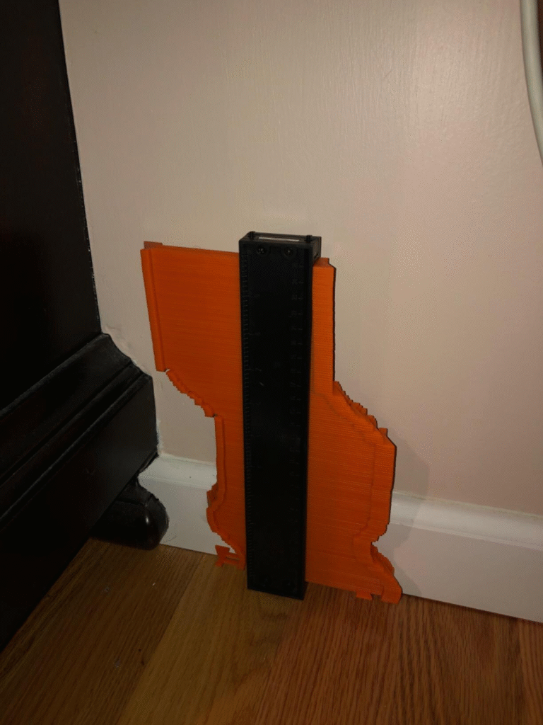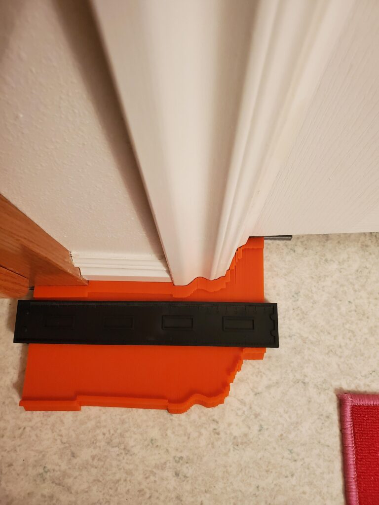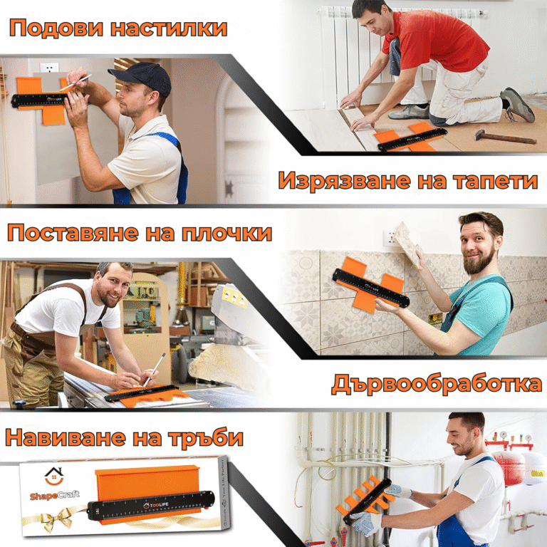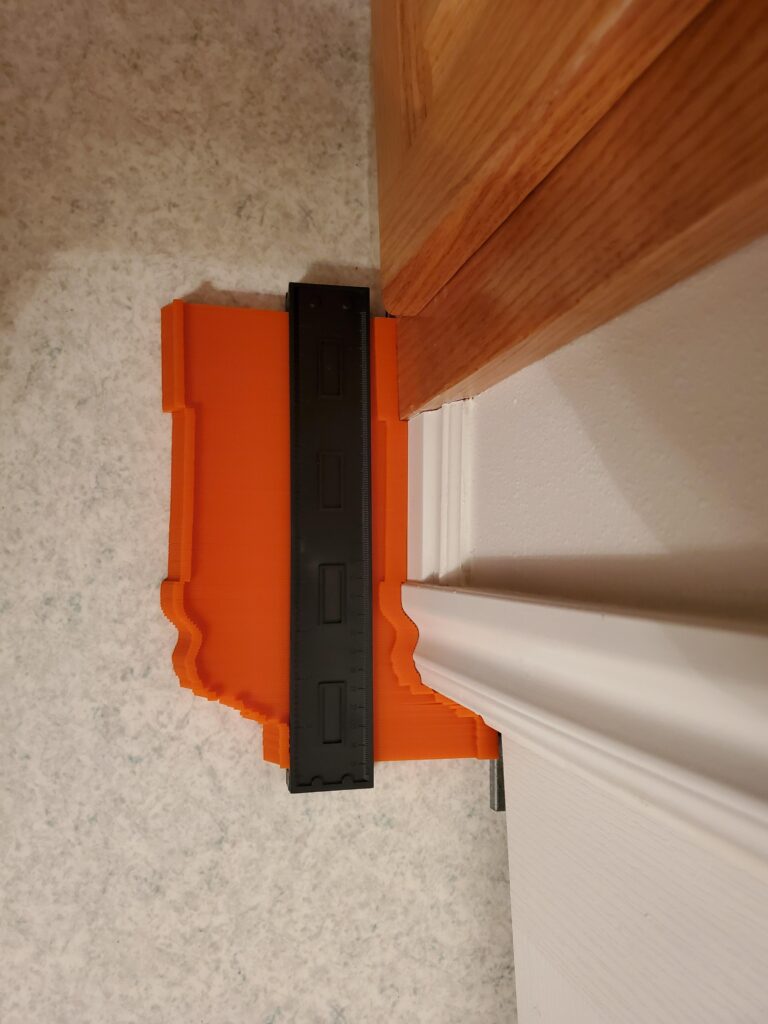 Това нещо е супер полезно! Иска ни се да го имахме по-рано! Измерителя се нагажда към рамките на вратите и други ъгли, а след това можете да я заключите и да я проследите върху това, което режете. Това е голяма икономия на време, без да се налага да правите измервания отново и отново. Точните срезове се получават много по-лесно!